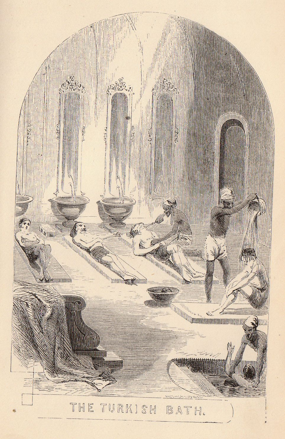 الكاتب Daniel Clarke Eddy (١٨٢٣-١٨٩٦) مبشّر أمريكي والطبعة الأولى للكتاب "Walter in Damascus" رأت النور عام ١٨٦٤. أقتصر اليوم على التعرّض للفصل الحادي عشر من الكتاب "الحمّام التركي" في سياق الحديث عن الحمّامات الشاميّة. طول هذا الفصل ١٣ صفحة لن أحاول تعريبها بالكامل مكتفياً بنقل واختزال الفقرات التي اعتبرتها بيت القصيد وهي - على عنصريّتها - لا تخلوا من الطرافة.