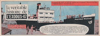 قصّة أزمة الباخرة المحمّلة بالمهاجرين اليهود إلى فلسطين ذائعة الصيت في السرديّات الإسرائيليّة وشبه مجهولة في العربيّة. أنصح لمن يريد معرفة المزيد عنها دون قراءة كتب مطوّلة استشارة الويكيبيديا الإنجليزيّة وليس العربيّة التي لا يتجاوز ذكر الحادثة فيها أربعة أسطر. لمن يريد معلومات سريعة بأسلوب سهل المتناول أقدّم في الأسطر التالية تلخيصي لقصّة مصوّرة نُشِرِت على أربع صفحات في العدد الصادر في الخامس من أيّار مايو عام ١٩٦٣ في مجلّة تان تان tintin (النسخة البلجيكيّة، السنة الثامنة والعشرون). الحوار بقلم البلجيكي André Fernez والرسوم لمواطنه الفنّان André Beckers.
